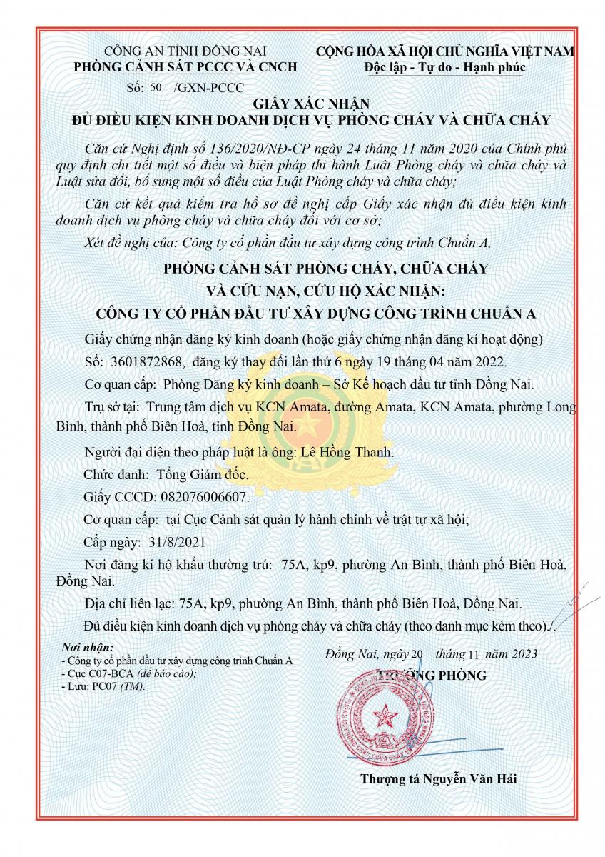 CÔNG TY CP ĐẦU TƯ XÂY DỰNG CÔNG TRÌNH CHUẨN A